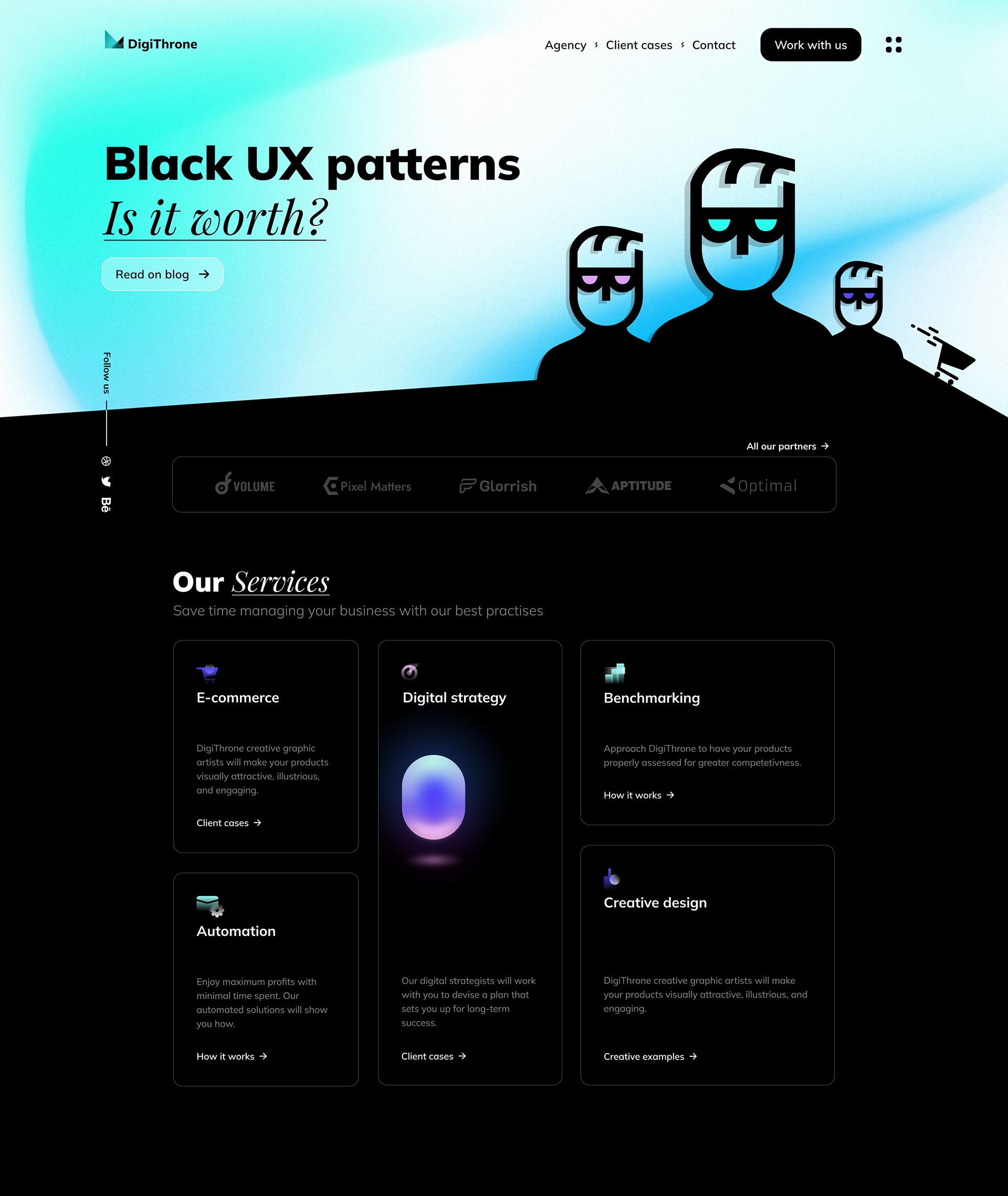 Digital agency home page concept. Done for fun and to experiment with gradients in Figma and Illustrator.